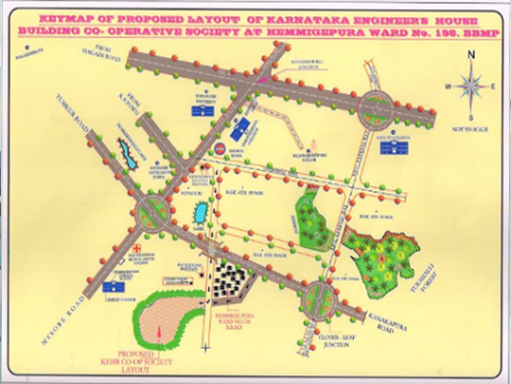 Hemmigepura Village, BBMP Ward No 198, Bengaluru. The very first project of the Society is nearing completion. Developed to standards that even few tier-I developers can think of. There are 174 Sites of various dimensions, most of them are oriented so as the house plan can easily adhere to Vaasthu Principles.